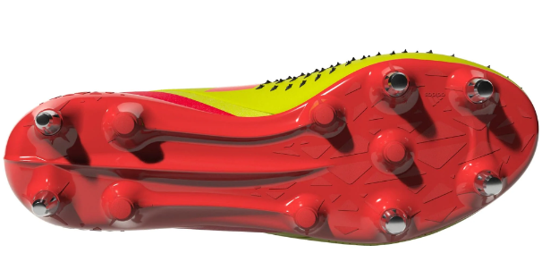 The covered asymmetric lacing offers a wide sweet spot for better ball contact. In the heel, Geo fit technology fills gaps with foam Sense pods for a secure lockdown. The lightweight outsole keeps you stable on soft ground.