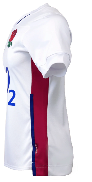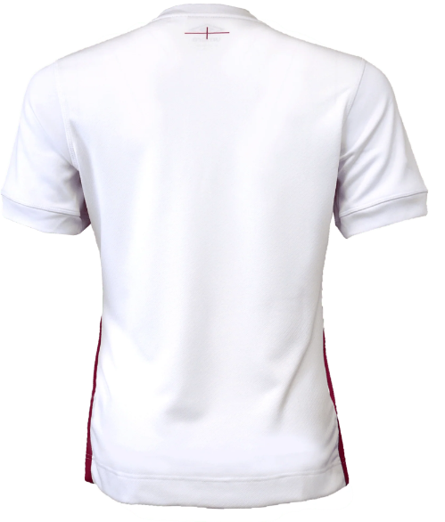 Show off your pride in the England Rugby team in comfort and classic English rugby style. This shirt features England’s brilliant white body, iconic rose, and St. George’s cross as a send off at the nape of the neck. Reinforced stitching and polyester fabric bring durability and comfort for tough training days or afternoons in the stands.